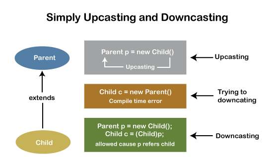 갤럭시나, 아이폰이나 일단 둘 다 휴대폰 이라는 큰 틀에 속해있습니다. 갤럭시 → 휴대폰, 아이폰 → 휴대폰으로 올리는 것이 업 캐스팅이고 그 반대로 휴대폰→갤럭시 or 휴대폰→아이폰 이 다운 캐스팅인데, 이를 위해서는 무엇에 대한 다운 캐스팅인지 명시해야할 필요가 있다는 것이죠.